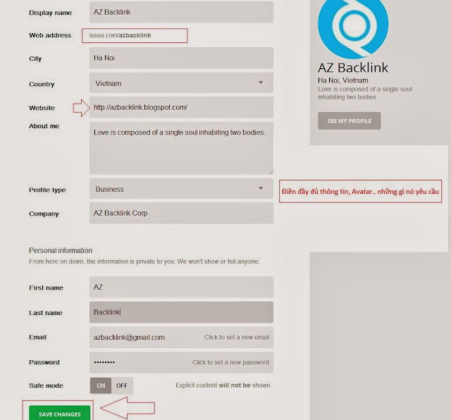VD: Trang chủ Profile của mình có dạng là: issuu.com/azbacklink