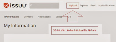 (hoặc vào bằng địa chỉ url của bạn vừa đăng ký: issuu.com/tên tài khoản